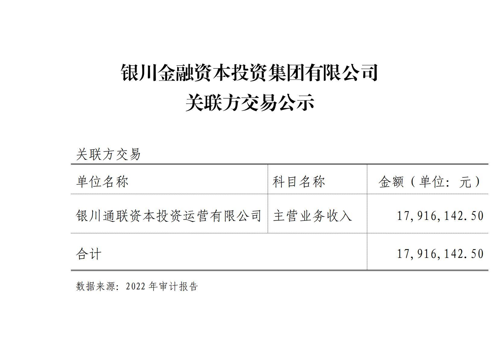 銀川金融資本投資集團(tuán)有限公司關(guān)聯(lián)方交易