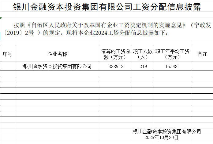 銀川金融資本投資集團(tuán)有限公司工資分配信息披露